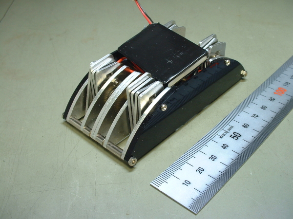 結果としては、ギアの固定方法や脚の機構に依然として問題点が残っている状態であるが、初期目標である全長10cmを達成したこと、しっかり動いたことなどにより割りと満足のいくものとなった。